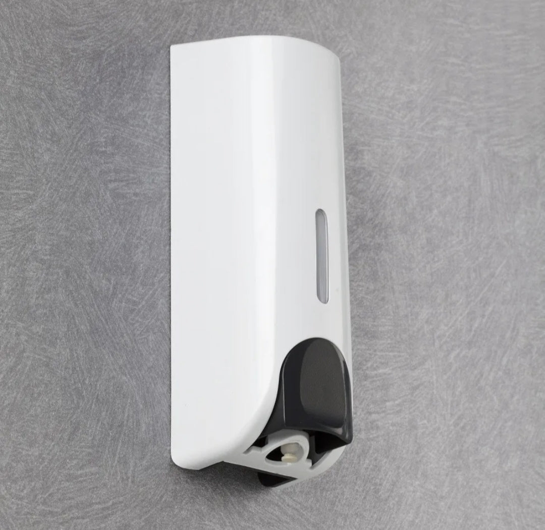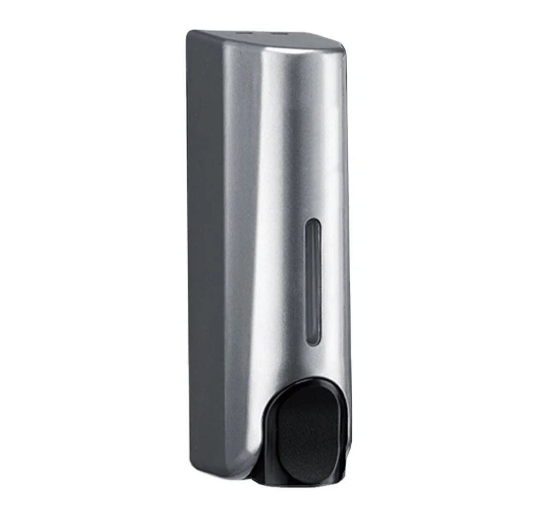Käsisaippua automaatti, manuaali toiminen, helppokäyttöinen, kompaktin kokoinen, helposti uudelleen täytettävä.