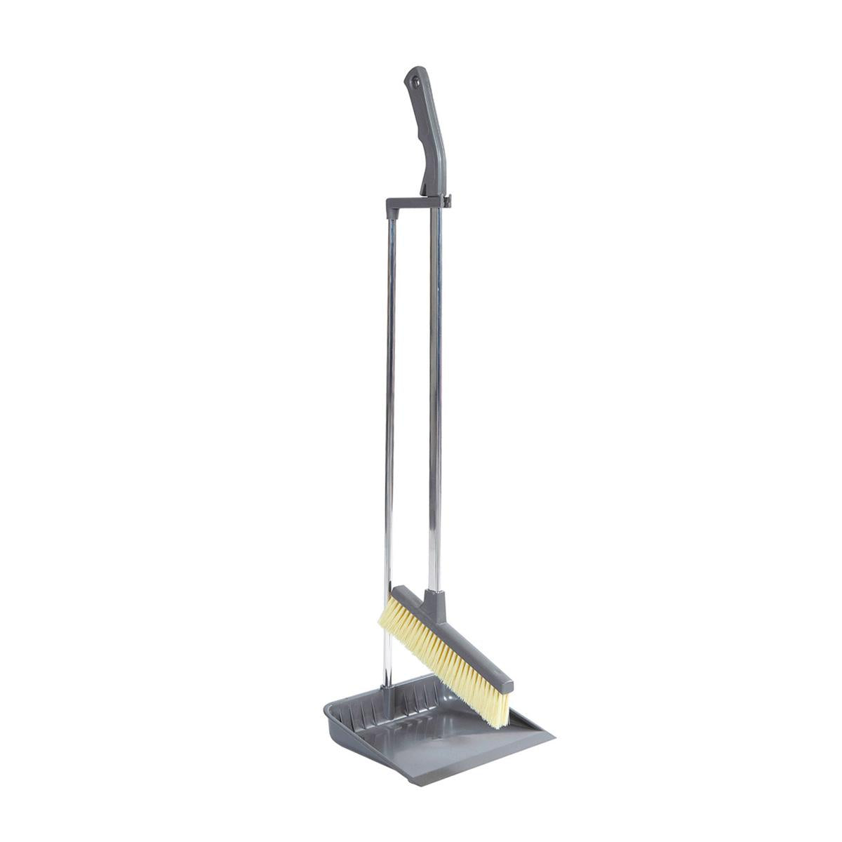 Kapearunkoinen vinovartinen harja polypropeeniharjastuksella ja muovinen, iskunkestävä rikkalapio.