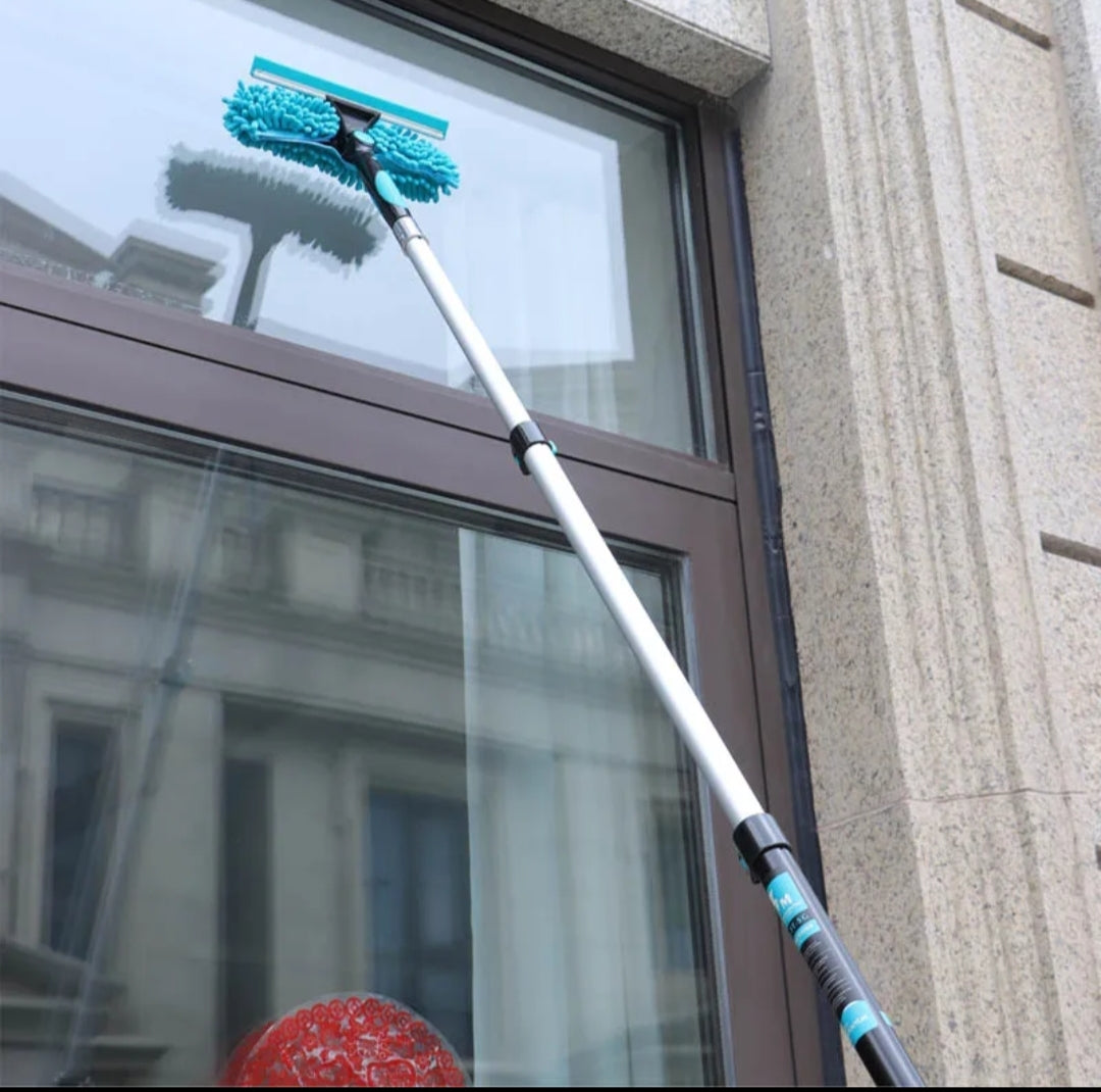 Pidä ikkunat, peilit ja muut lasipinnat kirkkaan puhtaina helposti ja tehokkaasti! Tämä 1,2 metrin teleskooppivarrella varustettu ikkunanpesin tekee korkeiden ja vaikeasti saavutettavien pintojen pesusta vaivatonta – ilman tikkaita.