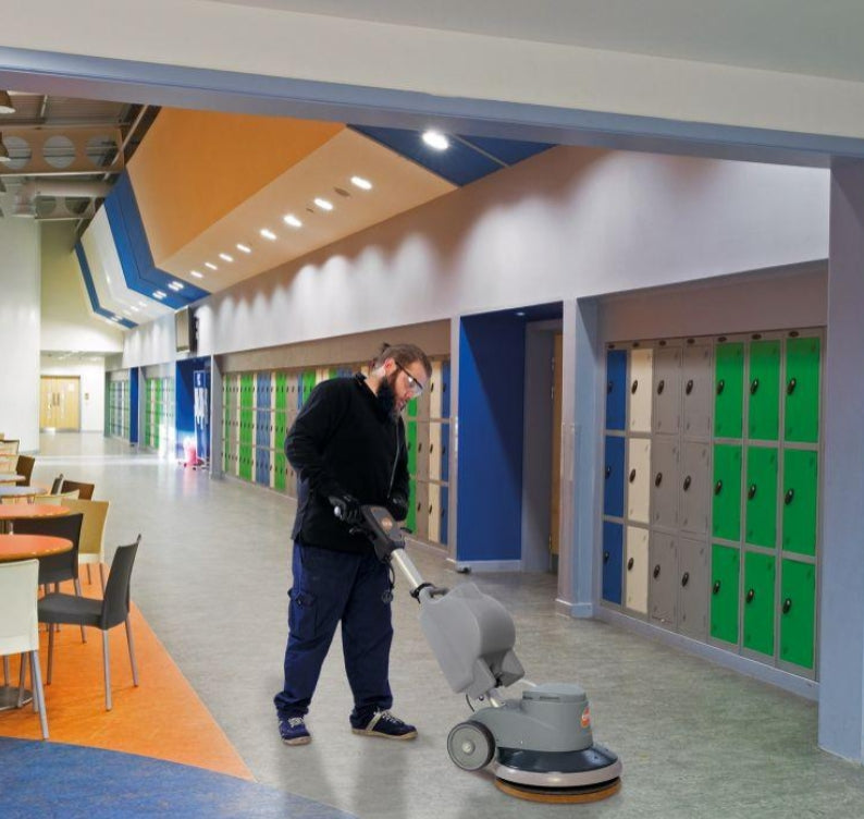 TMB TF 43 lattianhoitokone 17" sis. Verkkojohto, harja sekä vetoalusta.